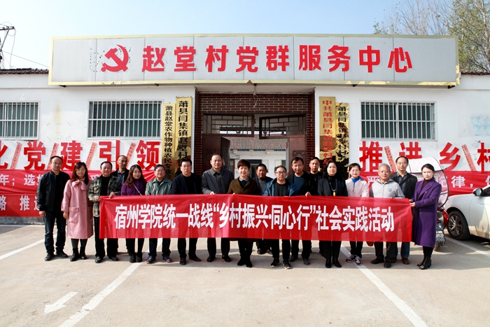 为深入贯彻习近平总书记关于实施乡村振兴战略重要讲话精神和党中央关于乡村振兴的决策部署,发挥统战优势,助力乡村振兴,11月19日,校党委统战部组织各民主党派、知联会负责人、侨联代表、部分政协委员等统战成员近20人赴萧县闫集镇赵堂村开展“乡村振兴·同心行”社会实践活动,党委统战部工作人员参加活动。