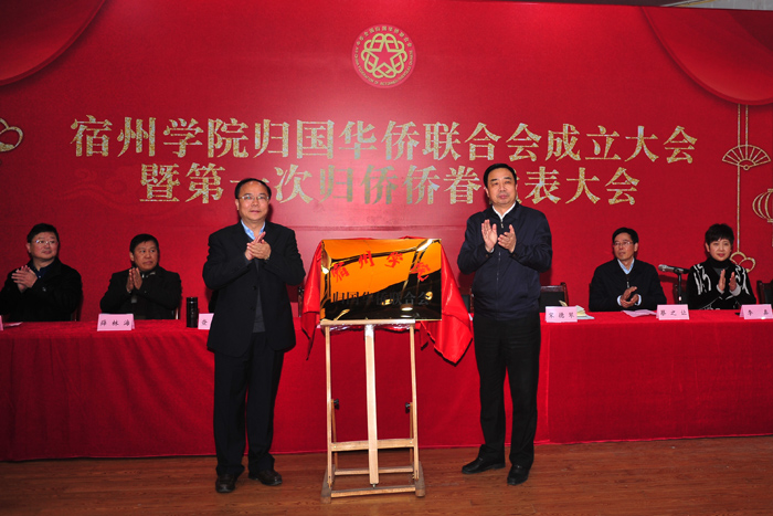 揭牌仪式上,安徽省侨联副主席杨冰和校党委书记陈国龙共同为宿州学院归国华侨联合会揭牌。校工会主席王勇代表群团组织致贺词,宿州学院侨联新当选主席张雁凌作表态发言。