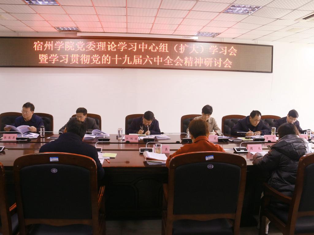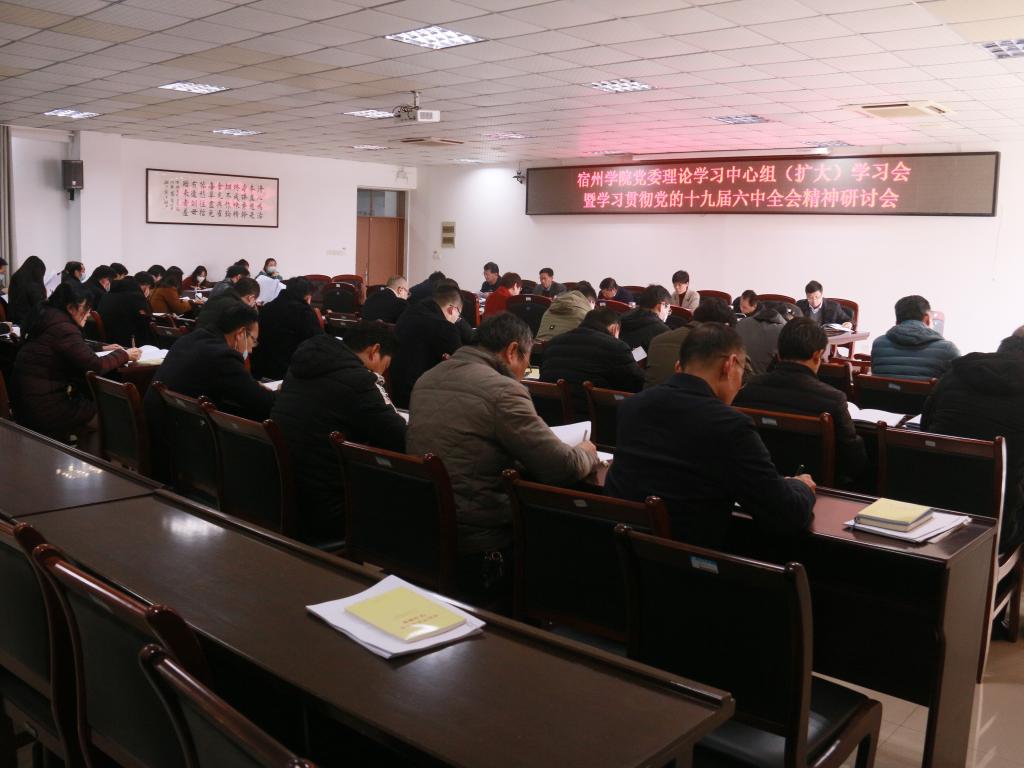 12月21日下午,我校在逸夫楼第一会议室召开党委理论学习中心组(扩大)学习会暨学习贯彻党的十九届六中全会精神研讨会。校领导、党委理论学习中心组全体成员、各职能部门主要负责人、各二级学院党政主要负责人参加会议,校党委书记汪刘送主持会议。