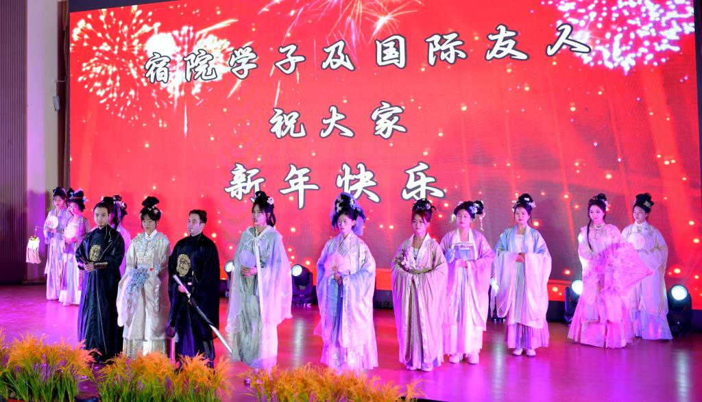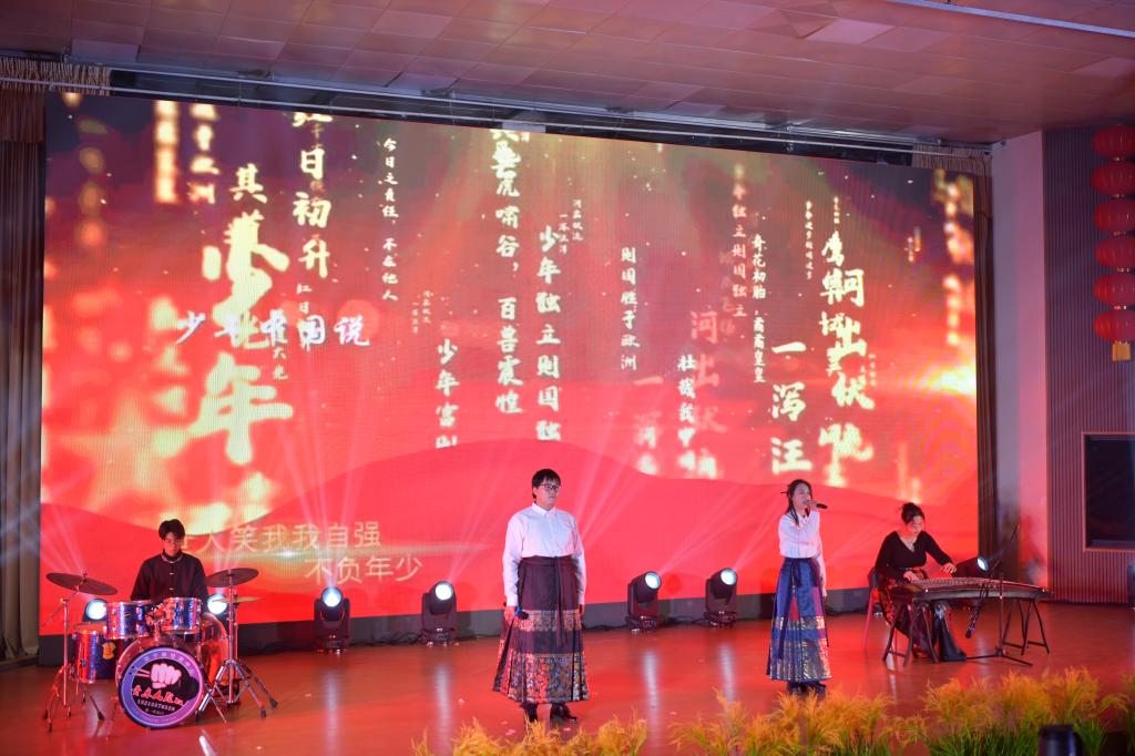 本次联欢会以“奋进新时代、共谱新华章”为主题,分为“春华秋实,行而不辍”“砥砺奋进,扬帆起航”“同舟共济,逐梦未来”“风鹏正举,再续华章”四个篇章。联欢会在舞狮表演《舞狮报喜贺新春》和民族管弦乐合奏《金蛇狂舞》《渔歌》中拉开序幕。《月光下的中国》《盛世中国的诗意》《少年中国说》《茶香满庭芳》《光影霓裳韵》《明天会更好》......精彩节目依次上演,歌曲、舞蹈、相声、朗诵、戏曲、走秀、茶艺表演,内容丰富,形式多样,精彩纷呈,表达了宿州学院师生对伟大祖国的美好祝福,对未来发展的坚定信心,充分展示了师生精彩才艺与精神风采。现场荧光棒如波起伏,掌声阵阵,师生们心心相连,共同享受着这场视听盛宴,整场联欢会热情洋溢、欢快温馨。