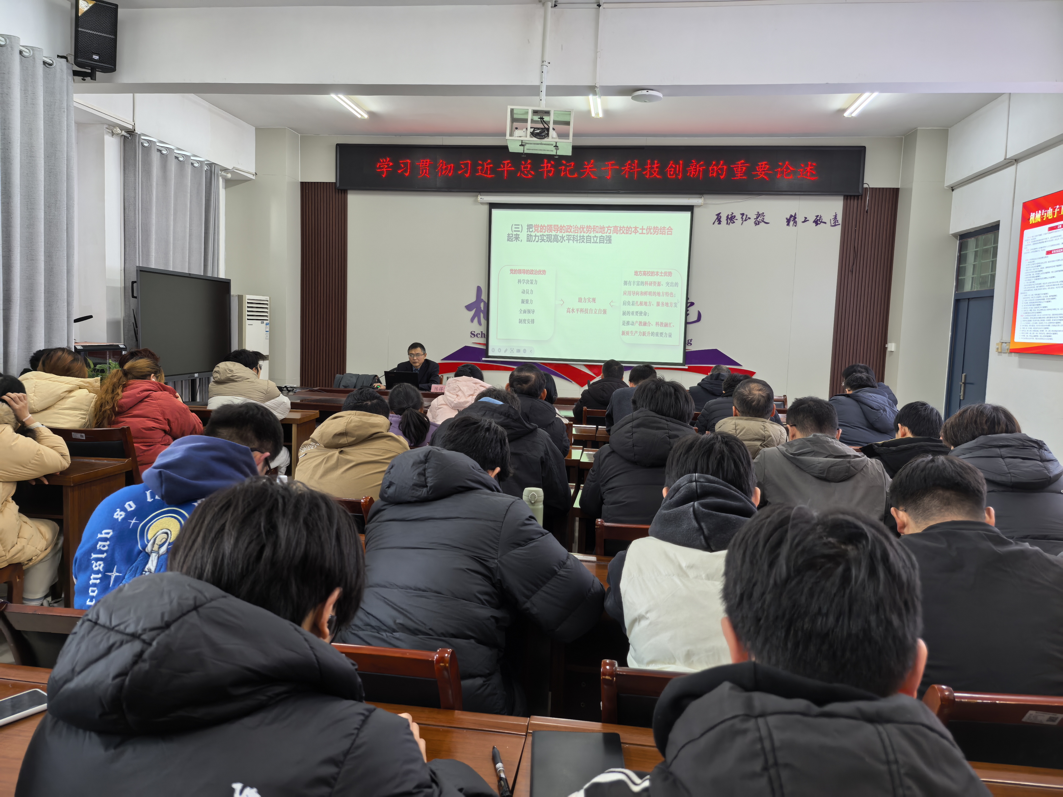 12月17日下午,副校长陈得宝走进机械与电子工程学院,围绕学习贯彻习平总书记关于科技创新的重要论述,为机械与电子工程学院师生讲授了一场主题鲜明、内容丰富、富有思想性、理论性、亲和力的思政课。机电学院班子成员、部分教师及2023级机械制造1班的同学现场聆听了课程。