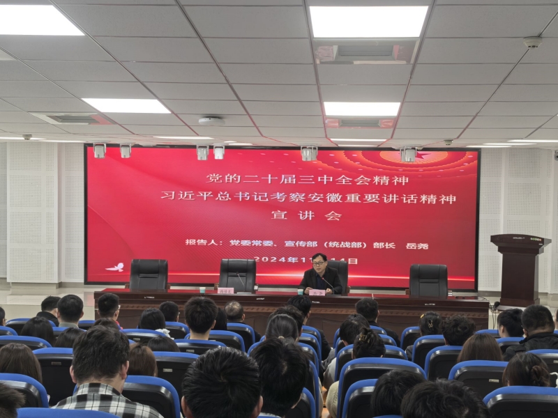 11月14日下午,校党委常委、宣传部部长岳尧到管理学院宣讲党的二十届三中全会精神和习近平总书记考察安徽重要讲话精神。管理学院党委副书记、院长韩传龙主持报告会,学院全体教师、2022级工程管理专业和2024级人力资源管理专业学生参加了宣讲会。