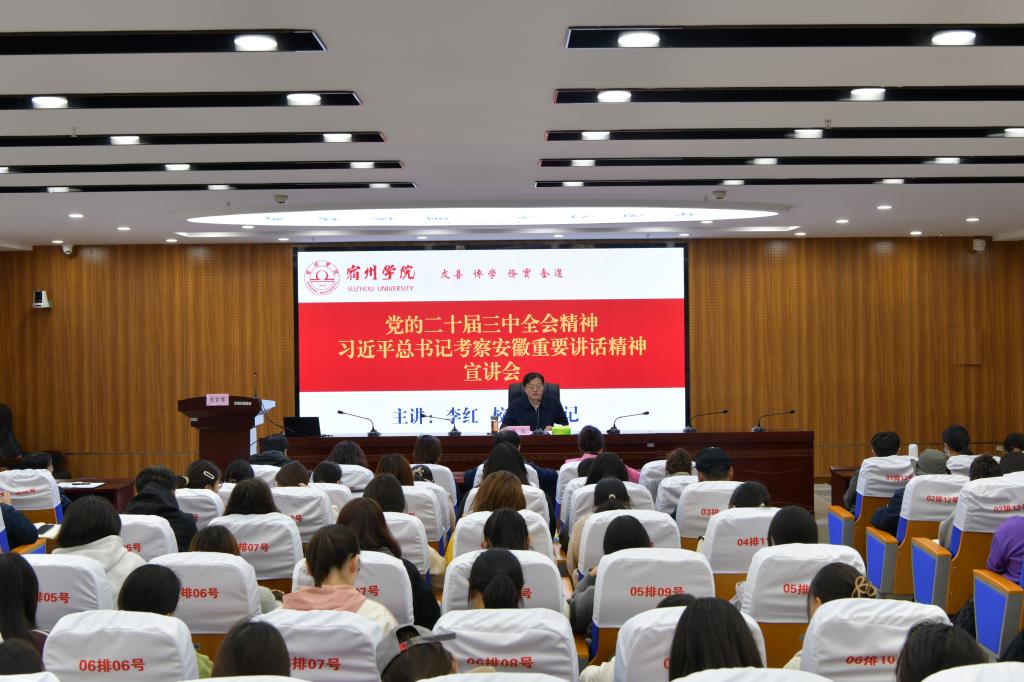 李红强调,学习贯彻党的二十届三中全会精神、习近平总书记考察安徽重要讲话精神是当前和今后一个时期的重大政治任务,要在深学细悟上下功夫,把学习贯彻党的二十届三中全会精神、习近平总书记考察安徽重要讲话精神一体贯通,与贯彻落实全国教育大会精神结合起来,与学校的巡视整改工作结合起来,进一步统一思想、明确目标、强化措施;要在深入宣讲上下功夫,积极开展多形式、多层面的宣传宣讲,引导广大党员和师生学明白、学透彻;要在学以致用上下功夫,全面深化教育综合改革,不断提升立德树人实效,奋力开创学校工作新局面;要以“拼到底”的劲头打好第四季度决胜战,提前谋划明年重点工作,做好“十五五”规划前期谋划,为明年开好局起好步打下坚实基础。