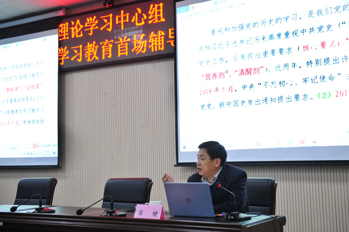 3月19日下午,我院召开党委理论学习中心组(扩大)学习会暨党史学习教育首场辅导报告会,会议邀请了省委党史研究院(省地方志研究院)副院长苗键作专题辅导报告。党委书记汪刘送主持报告会,院领导,院党委理论学习中心组全体成员,全院副处级以上干部、组织员、党支部书记、马克思主义学院教师代表参加会议。