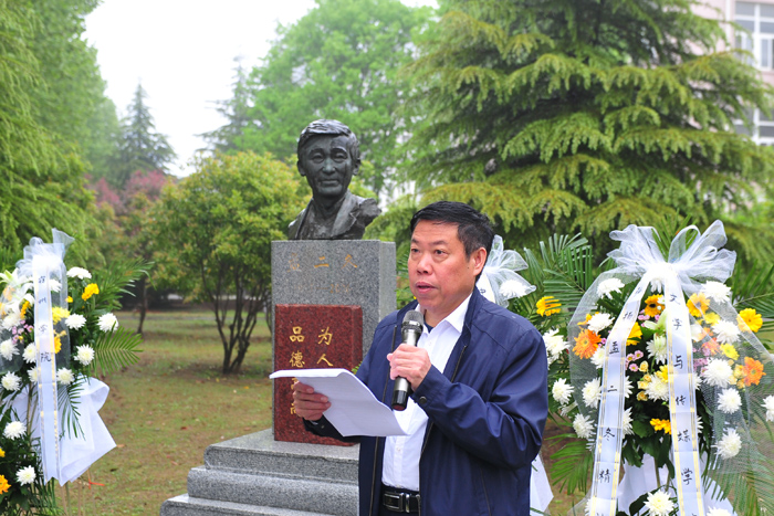 汪刘送在讲话中介绍了孟二冬教授立足平凡岗位铸就的不平凡人生,带领大家重温了孟二冬教授“淡泊名利、潜心育人、坐冷板凳、做真学问”的精神历程,带领大家再次走进了孟二冬教授“学为人师、行为世范”的人格境界,接受孟二冬教授“为学、为文、为师、为人”高尚品德的精神洗礼。汪刘送指出,孟二冬教授的一生,是奋斗的一生,从专科到硕士研究生,从硕士研究生到博士,他不断超越;孟二冬教授的一生,是勤勉的一生,从《中唐诗歌之新变与开拓》到《登科记考补正》,他笔耕不辍,400多万文字,字字珠玑,填补了学术史的诸多空白;他把毕生的心血洒在了三尺讲台,在他生命的最后时间里,他始终惦记着他的学生,眷恋着他未竟的事业。孟二冬以平凡岗位铸就的不朽人生,诠释了“道德文章,堪为师表”的优秀品质,孟二冬先生的一生,是奉献的一生。他的师者风范,感动了各行各业的人。15年来,孟二冬精神在宿州学院薪火相传,学院先后建设了孟二冬纪念馆(2007年)、成立了孟二冬文学院(2008年)、成立了孟二冬精神研究会(2009年)、出版了《不朽的师魂——孟二冬》(2010)一书、落成了孟二冬铜像(2011年)等等。孟二冬纪念馆建馆以来,先后接待来校瞻仰10多万人次。15年来,我们共同见证了以孟二冬精神为核心的宿州学院大学精神,在母校传承弘扬而沁入师道人心,内化为宿州学院人友善博学、务实奋进、开拓进取的精神力量。