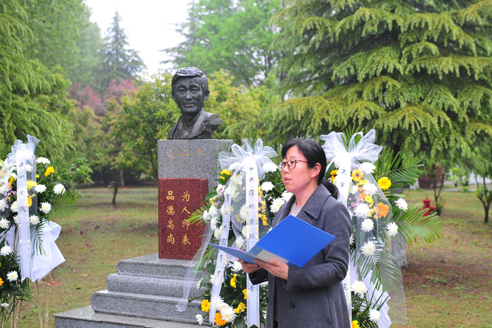 追思会在教育园区校园二冬大道东侧孟二冬雕像前举行。活动开始,学生代表向孟二冬教授雕像敬献花篮,院党委书记汪刘送、孟二冬生前老师周治杰扶正挽联,全体人员默哀三分钟致敬,以示深切缅怀之情。