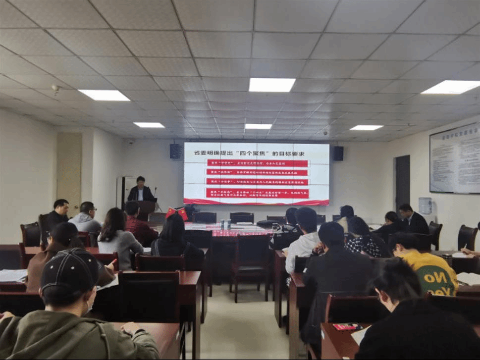 4月29日,宿州学院党委委员、副院长张英彦到管理学院做党史学习教育专题宣讲报告,全院教师党员、学生党员代表参会。