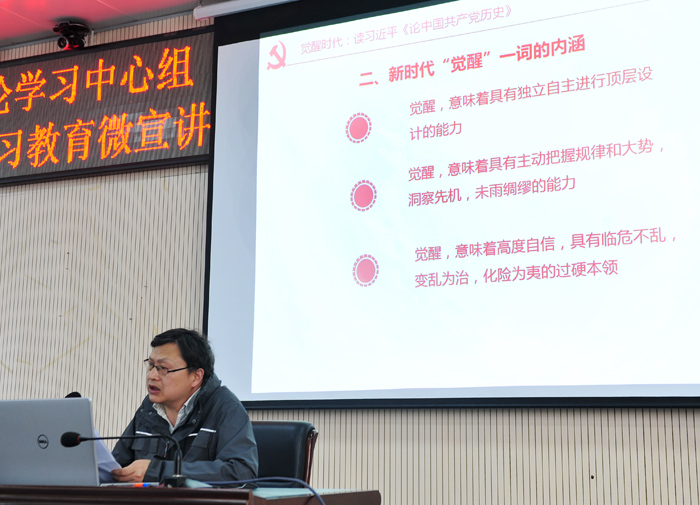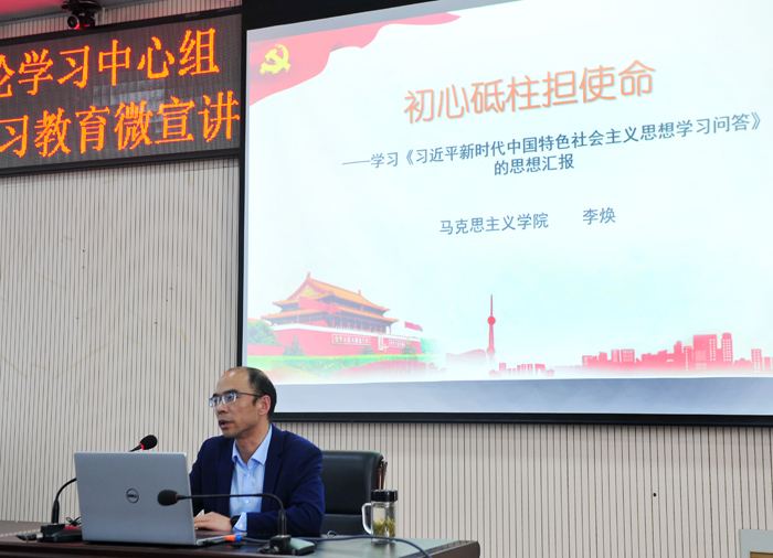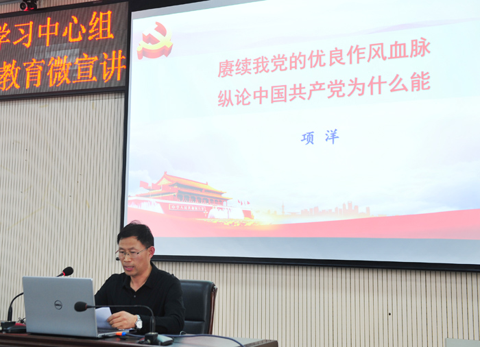 项洋副教授作《赓续我党的优良作风血脉纵论中国共产党为什么能》主题宣讲。他指出,追溯党的百年历史,有一条历经千锤百炼得出的宝贵经验,就是始终坚持党的领导。在革命、建设、改革的每一段历史进程中,正是广大人民选择了中国共产党的领导,中国才能彻底结束旧中国半殖民地半封建社会的历史,才能完成最为广泛而深刻的社会变革,才能真正开启中国的伟大崛起之路,实现中国人民从站起来到富起来,最终强起来的质的跨越。李焕作《初心砥柱担使命》主题宣讲。他从叩问初心、锤炼初心、滋养初心和永担使命四个方面对“对党员干部来讲,为什么说不忘初心、牢记使命是一辈子的事”进行了解读。四位老师的报告视野开阔、深入浅出,为我院开展党史学习教育作了一次非常深刻的辅导。