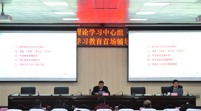3月19日下午,我院召开党委理论学习中心组(扩大)学习会暨党史学习教育首场辅导报告会,会议邀请了省委党史研究院(省地方志研究院)副院长苗键作专题辅导报告。党委书记汪刘送主持报告会,院领导,院党委理论学习中心组全体成员,全院副处级以上干部、组织员、党支部书记、马克思主义学院教师代表参加会议。
