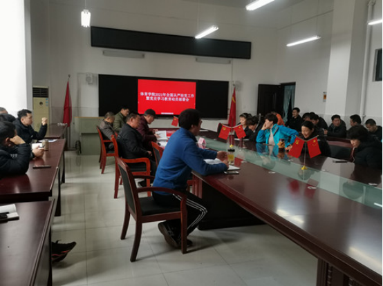 3月17日下午,体育学院在体育馆会议室召开2021年全面从严治党工作暨党史学习教育动员部署会,党委书记宋红军主持,科级以上干部、教研室主任、党支部书记和全体党员参加。