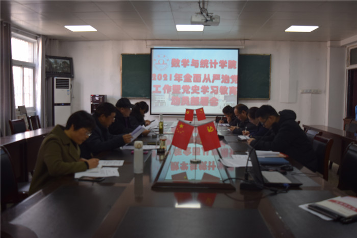 会上,传达了学校2021年全面从严治党工作暨党史学习教育动员部署会议精神及校党委书记汪刘送在动员部署会上的讲话精神,学习了学校关于开展党史学习教育的实施方案的文件精神和要求,同时,对数统学院2021年全面从严治党工作及党史学习教育工作进行了布置和安排,并宣布成立数统学院党史学习教育领导小组。