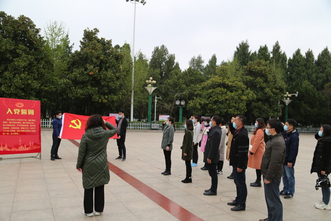 在庄严肃穆的革命烈士纪念碑前,大家驻足瞻仰,向革命先烈鞠躬致敬,敬献鲜花;面向鲜红的党旗,全体党员举起右手,怀着对革命先烈无限崇敬之情,庄严宣誓,重温入党誓词。