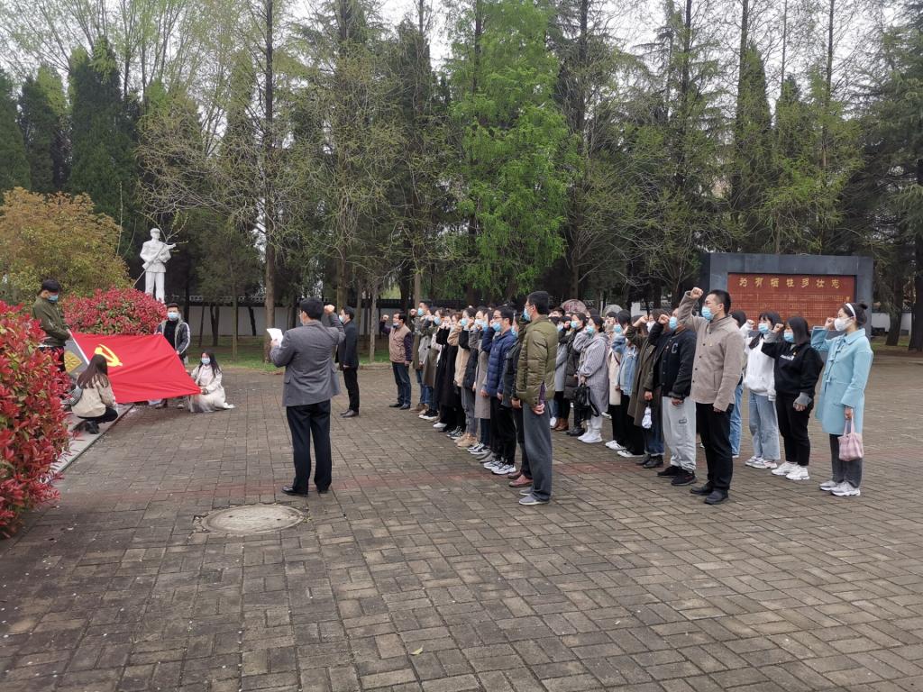 党员代表首先向革命烈士纪念碑敬献了花篮,全体党员怀着崇敬的心情,鞠躬致敬,深切表达缅怀之情。随后,在陈述立的带领下,全体党员重温了入党誓词,对着党旗庄严宣誓,表达了不忘初心,牢记使命,永远跟党走的坚定信念。