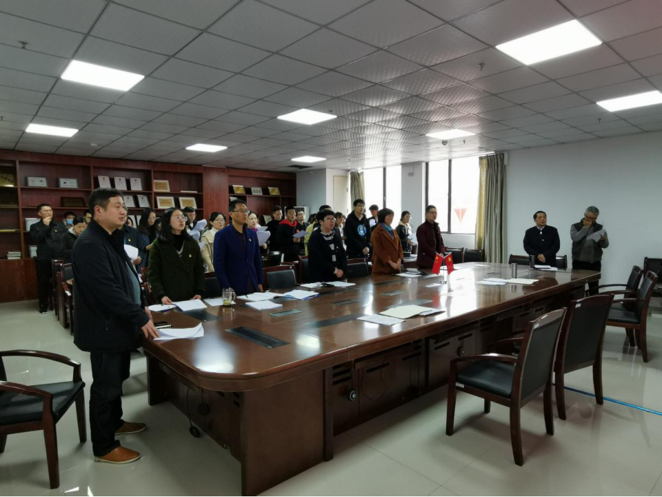 接着,由刘大为和高歌带领全体教师及学生代表颂唱《国际歌》。在众人铿锵有力的歌声中感受到了《国际歌》所表达的拼搏进取和革命乐观主义精神,每个人都壮怀激烈,心潮澎湃,更加坚定了对中国共产党的理想和信念。