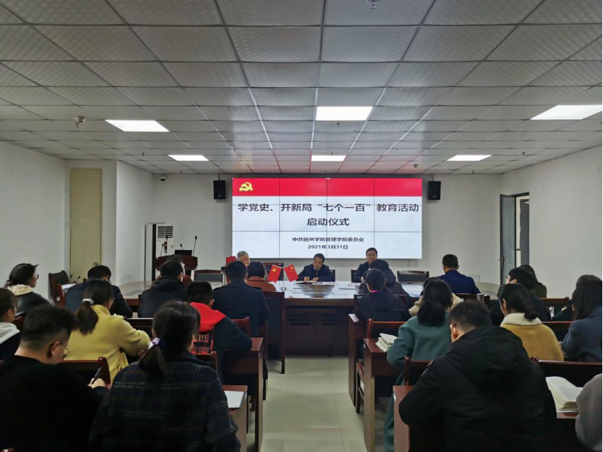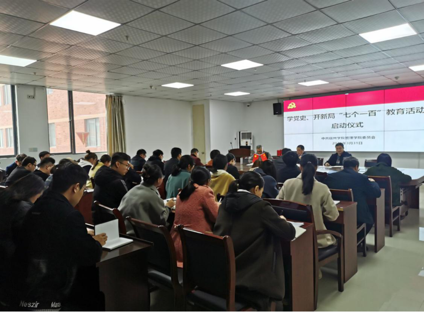 为隆重纪念中国共产党的百年华诞,宣传党的百年奋斗历程和丰功伟绩,激发广大师生的爱国热情,管理学院于3月31日举行学党史、开新局“七个一百”教育活动启动仪式。启动仪式由管理学院党委书记刘大为主持,副书记、副院长韩传龙、副书记王永宁、及全体教师和学生代表参加。
