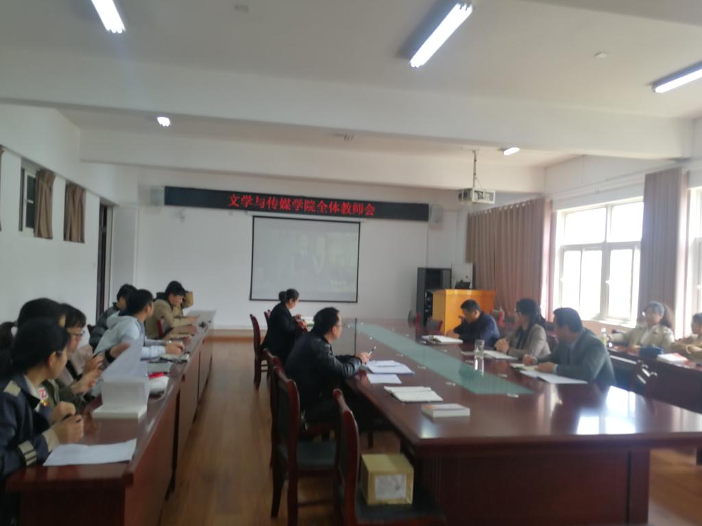 4月14日,文学与传媒学院召开全体教师政治理论学习会,会议由文学与传媒学院党委书记李月云主持,全体教师参会。