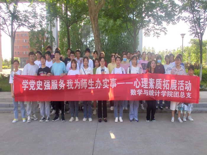 学党史,强服务,我为师生办实事。数统学院团总支为我院学生举办心理素质拓展系列活动,增强集体凝聚力,放松心情,磨练意志,有效减压。丰富了同学们的业余生活,推动了我院精神文明建设,塑造了大学生的健康心理。