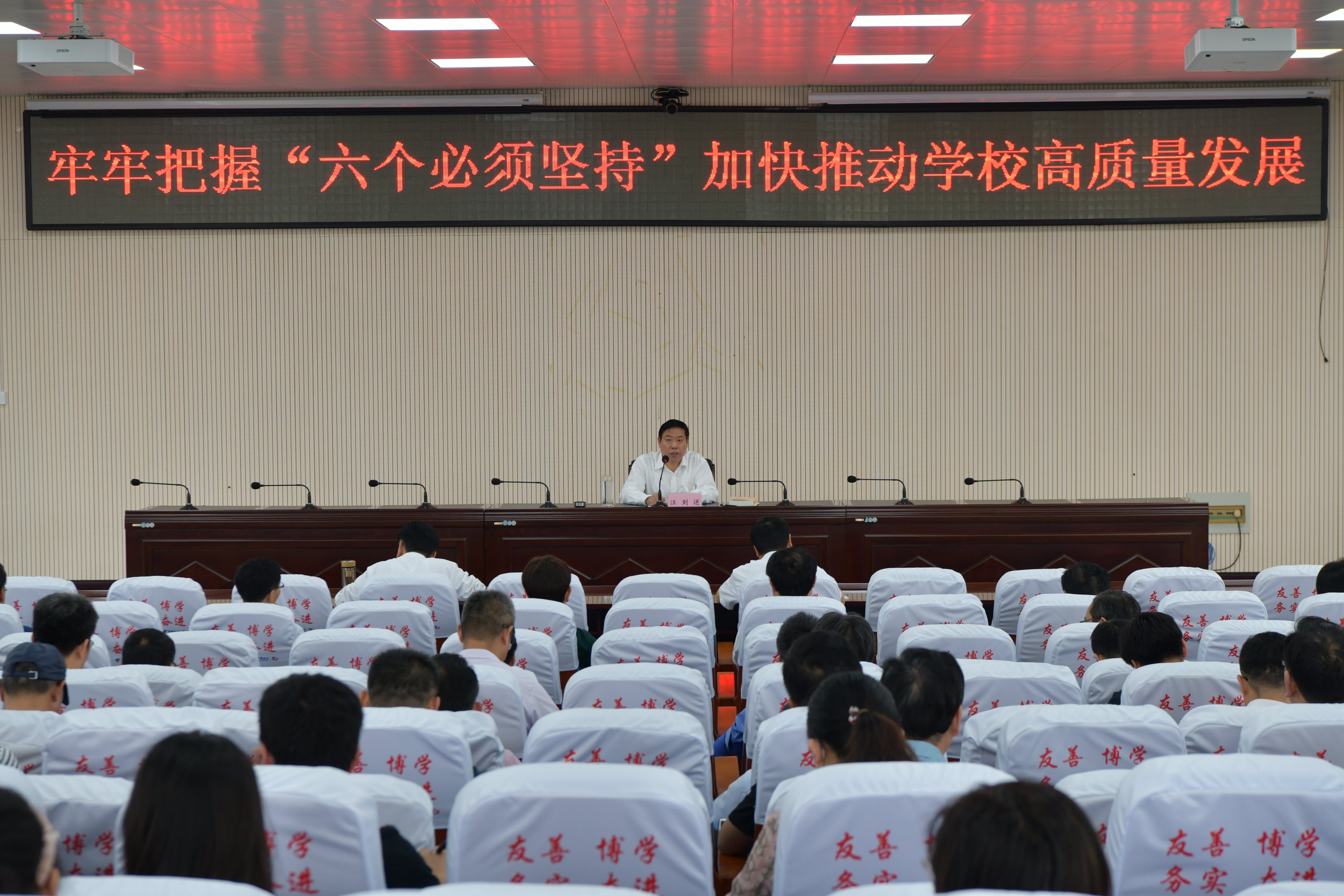 汪刘送强调,推动学院高质量内涵式发展,必须坚持自信自立,奋力比学赶超,努力争先进位。坚持不懈用党的创新理论凝心铸魂,充分发挥思政课主渠道、主阵地作用,其他各门课程守好“一段渠”、种好“责任田”,用好“第二课堂”,充分利用好红色资源开展主题实践活动。要坚定发展自信,坚持稳中求进,从校情出发、从实际出发,锚定“两个建成”目标任务,凝心聚力、苦干实干,坚决打赢“申硕”攻坚战,推动全校上下形成比学赶超、争创一流的浓厚氛围,以高质量发展的实在成效,交出高质量发展的满意答卷。
