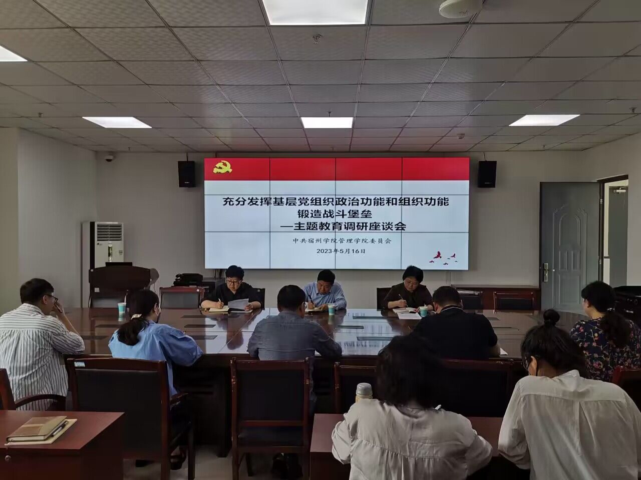 为扎实开展主题教育,以深化调查研究推动解决发展难题,全力推进实现学院“两个建成”的目标,根据学院主题教育实施方案和大兴调查研究实施方案的部署安排,5月15日至26日,学院党委书记汪刘送深入信工学院、管理学院、商学院和数统学院,围绕“充分发挥基层党组织政治功能和组织功能,锻造坚强战斗堡垒”主题开展专题调研。