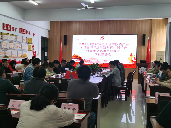为深入开展学习贯彻习近平新时代中国特色社会主义思想主题教育,2023年4月26日下午,信息工程学院在工B315会议室召开了学习贯彻习近平新时代中国特色社会主义思想主题教育动员部署会,宿州学院主题教育第八督查组组长宋辉,成员黄伟、王艳到会,动员部署会由信息工程学院党委书记余晓永主持,信工学院全体教职工、部分学生党员代表参加了动员部署会