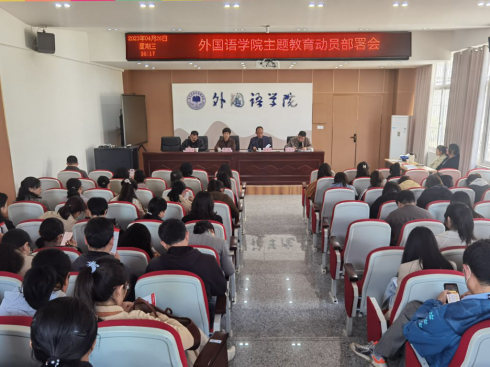 首先外国语学院党委副书记、纪委书记张亚锋传达了中央主题教育工作会议上习近平总书记重要讲话精神,带领与会人员学习传达了省委主题教育动员大会精神。郝景东在会上作动员讲话,传达了学校主题教育实施方案,强调要高度重视此次主题教育,要求深入学习贯彻习近平新时代中国特色社会主义思想、全面贯彻党的教育方针、落实立德树人根本任务、奋力推进地方应用型高水平大学建设的重要举措。