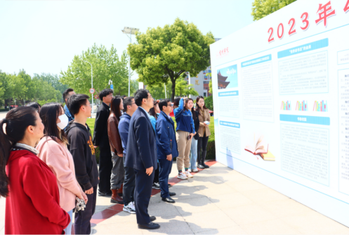 会后,全体党员在图书馆楼前参观了党的二十大报告关于“深化全民阅读活动”和习近平总书记致首届全民阅读大会贺信精神展板。