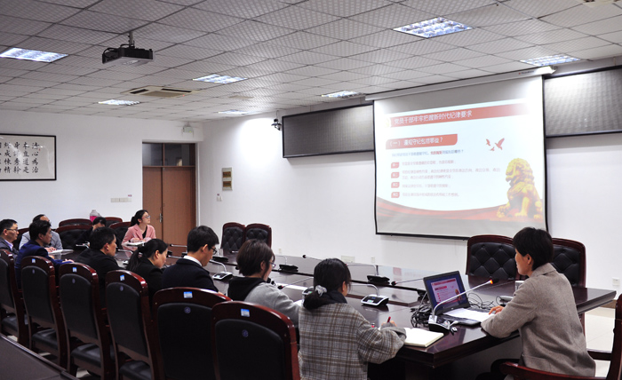 为开展好新一轮深化“三个以案”警示教育和抓好巡视反馈问题整改,4月1日下午,院长张莉在逸夫楼第一会议室,为办公室、审计处、人事处上党风廉政专题党课。党课以党风廉政建设为主题,从新时代纪律要求,知敬畏、存戒惧、守底线具体内容,及如何在工作实践中守纪律等是三个方面展开。