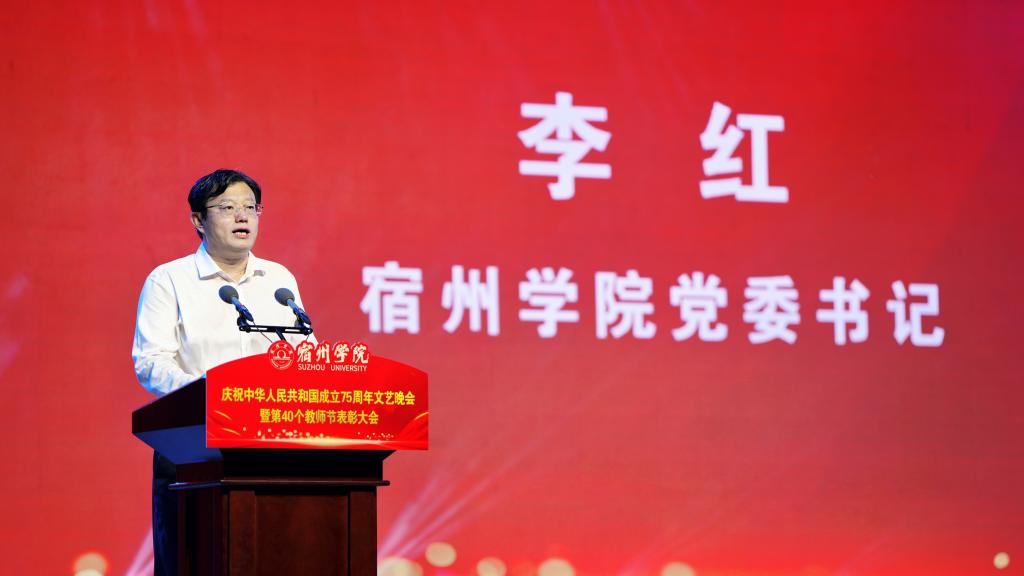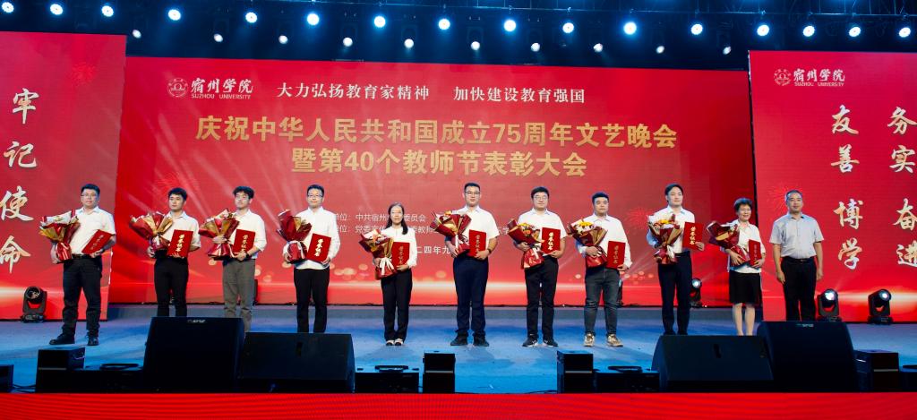 遍地蕙兰化思雨,满园桃李谢春风。9月10日,宿州学院庆祝中华人民共和国成立75周年文艺晚会暨第40个教师节表彰大会在教育园区校区田径运动场举行。校领导李红、闵杰、王俊、杨维志、邢存海、王红艳、陈得宝出席活动,各职能部门负责人,各二级学院党政负责人,受表彰教师,教职工代表,2024级全体新生等5000余人欢聚一堂,共同庆祝第40个教师节,共同庆祝伟大的祖国繁荣昌盛、国泰民安。