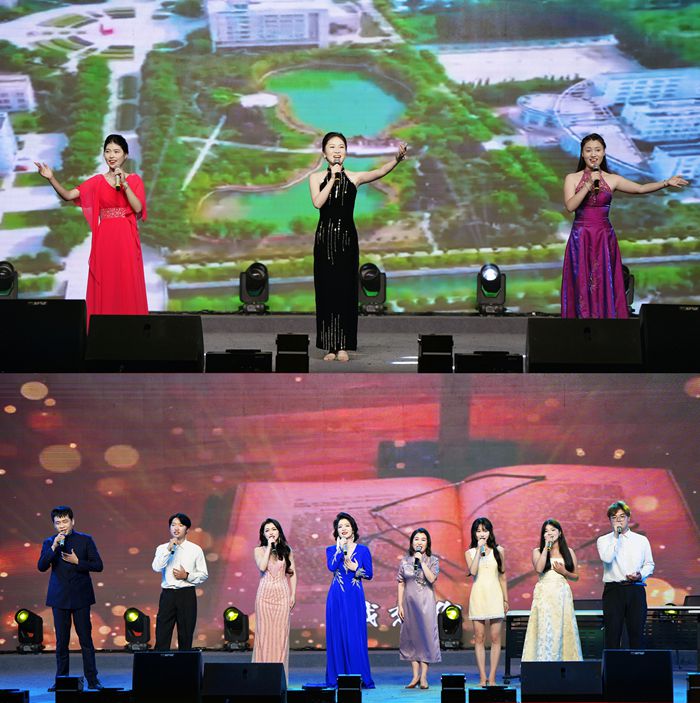 晚会围绕“老师,您好!”“菁菁校园”与“祝福祖国”三个篇章徐徐展开。歌曲《最美是你》《老师,我想你》唱出了万千学子对老师的感激和思念之情。节目《孟二冬——严教》《桃李芬芳花满天》《持续奋斗续华章》采用了现代泗州戏等形式唱出了全体师生共同奋斗的赞歌。古筝重奏《满江红随想》、朗诵《青春中国》、配乐伴舞《万疆之春》诵出了青春不朽的责任与使命,表达了对祖国最崇高的敬意和最美好的祝福。晚会节目涵盖了歌曲、舞蹈、朗诵、戏曲、乐器演奏等多个艺术门类,类型丰富多样,寓意深远,充分展现了宿院学子朝气蓬勃、昂扬向上的精神风貌,以及丰富多元、底蕴深厚的校园文化氛围。